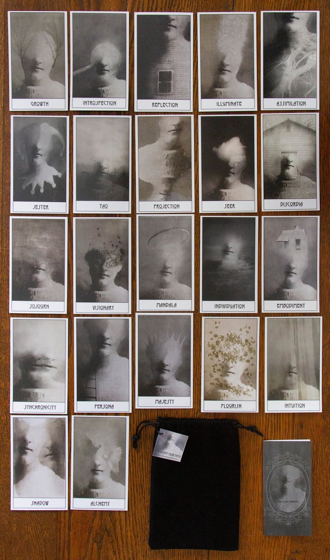 This deck of cards is from my project The Silent Year. It is rooted in the mysterious inner world that we turn to when we're faced with great loss and transition....where the magic of transformation happens. Each card personifies an archetype that can be used for meditation or reflection and comes with a book that speaks more to each of these concepts.
